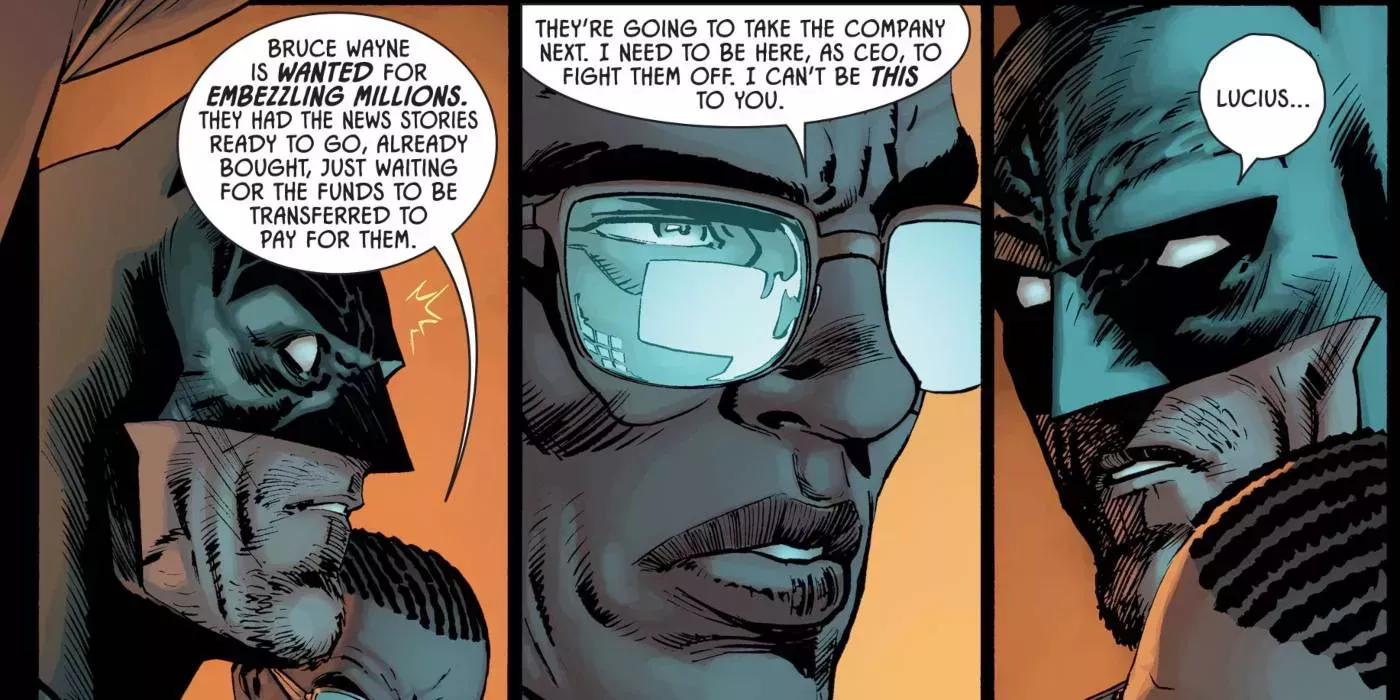 Tras la muerte de Thomas y Martha Wayne, la gente de Gotham está obligada a ver una nueva cara de Empresas Wayne en el ínterin. Lucius Fox es un candidato idóneo, dado que es mayor que Batman y lo más probable es que ascendiera como ingeniero en la época del Joker mientras criaba o preparaba a su hijo. En los cómics, incluso fue nombrado director general durante un tiempo.