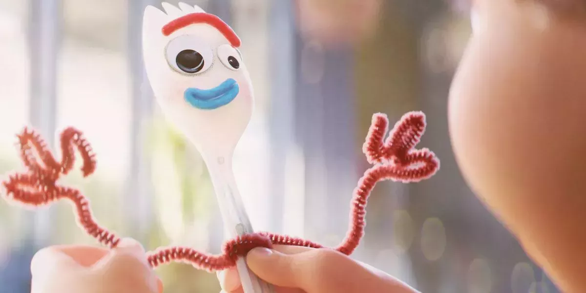 En Toy Story 4, Forky es creado por Bonnie a partir de varios materiales, siendo el componente principal un spork. Como es un spork, no reacciona bien al ganar vida. Actuar como un juguete, en su mente, no es su verdadero propósito. Se pasa el principio de Toy Story 4 convencido de que es una basura.
