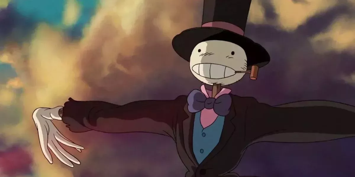 Cabeza de Nabo deHowl's Moving Castlees un príncipe convertido en espantapájaros. Moverse sobre un poste que ha sustituido a sus pies es, sin duda, difícil, ya que se ve obligado a rebotar y a equilibrarse precariamente sobre las cosas para mantenerse erguido. Una ráfaga de viento o un aterrizaje incorrecto bastan para desequilibrar al pobre príncipe.