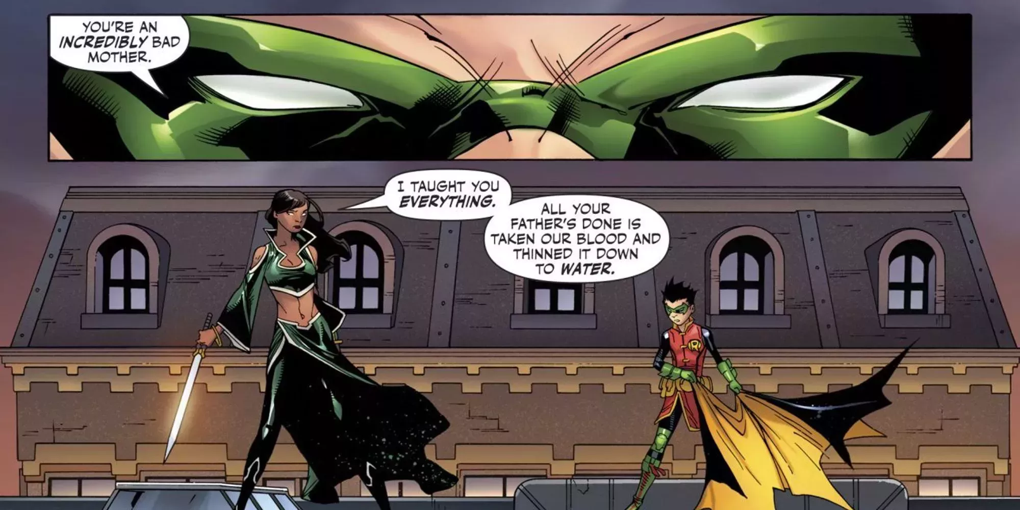 El propio Damian Wayne como Robin no duda en calificar a Talia de madre terrible en los cómics, y no le falta razón. Ra's y Talia sólo querían convertir al hijo de Bruce Wayne en un arma contra él y el mundo mientras que Damian, para ser tan joven, abrazó los ideales de su padre y la búsqueda de la justicia.