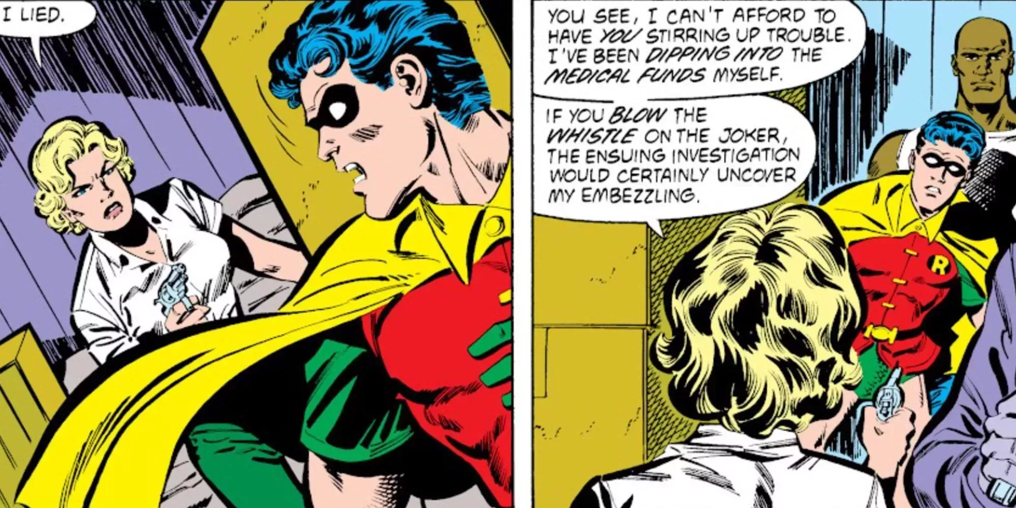Toda la oscuridad en la vida de Jason Todd provenía de su madre Sheila, que ya era negligente con Jason. Además de eso, Sheila era una criminal que malversó el dinero de su práctica como médico en Etiopía. Lo peor de todo es que Sheila vendió a Jason al Joker, provocando así su muerte, algo que Jason nunca ha hecho a la Bat-Familia, ni siquiera en sus peores momentos.