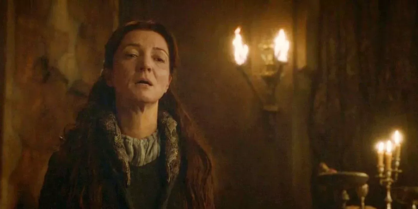 CatelynStark era en realidad el personaje principal al que se le daba otra oportunidad de vivir en los libros, pero la resurrección de Jon hizo que los guionistas deJuego de Tronos optaran por no traer también a Catelyn. En los libros, Catelyn regresó de entre los muertos como la vengativa Lady Stoneheart, vengándose de cualquiera que estuviera remotamente relacionado con la masacre de la Boda Roja.