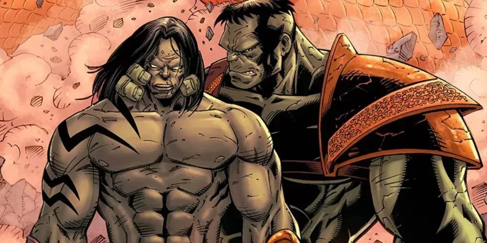 Cuando Hulk se enteró de que su hijo estaba vivo y era autosuficiente, lo manejó de una manera muy extraña. En ese momento, Hulk había vuelto a un estado menos inteligente, y decidió intentar entrenar a su hijo para que se convirtiera en la versión más fuerte posible de sí mismo. Hulk enfrentó a Skaar a una serie de desafíos físicos en lugar de intentar conectar con su hijo, del que estaba distanciado.