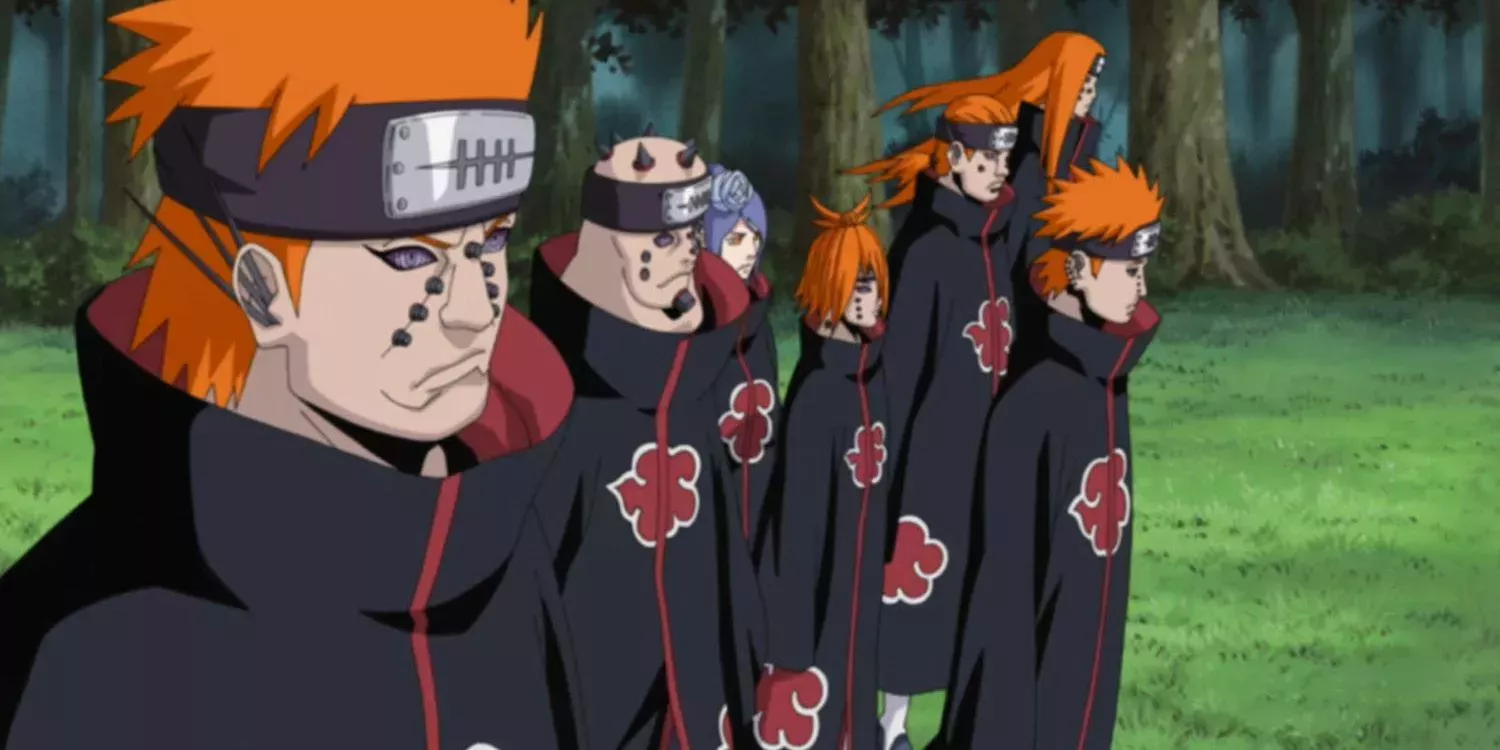 Otro miembro poderoso de Akatsuki es Pain, que en realidad son seis personas en una, todas controladas a distancia con los dispositivos conectados a sus rostros. Juntos, los Seis Caminos del Dolor son casi imbatibles, en gran parte porque todos comparten información visual con el ojo Rinnegan. El dolor no tiene ningún punto ciego.