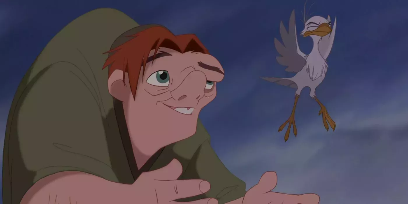 En El jorobado de Notre Dame, Quasimodo suele ser maltratado, ya que la gente del pueblo y su amo, Frollo, se burlan implacablemente de él por su aspecto. Esmeralda, de la que se enamora perdidamente, es la primera en reconocer su corazón bondadoso y su valentÃa.