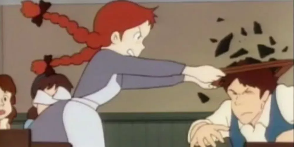 Gilbert se burla de ella, intentando llamar su atención llamándola "zanahoria". Sin embargo, el color del pelo de Anne es algo de lo que ella está muy acomplejada, asà que se toma su cariñoso apodo burlón como un ataque y le golpea en la cabeza con su pizarra. Sin embargo, llevarse una pizarra directamente a la cúpula no detiene la fuerza de los afectos de Gilbert, aunque sà le anima a cambiar de táctica.