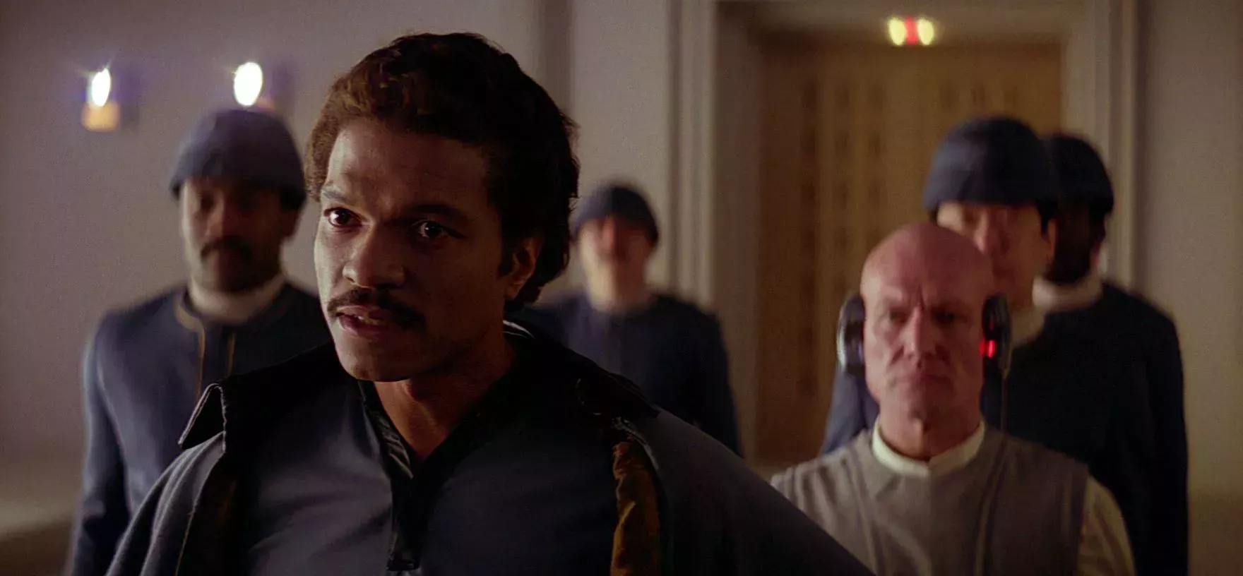 Lando Calrissian es uno de los personajes más complejos de la trilogía original. Es un auténtico amigo de Han Solo y Chewbacca. Sin embargo, su primer acto importante en la trilogía es traicionarlos al Imperio. Lando tiene sus razones, pero no deja de ser un movimiento de sangre fría. Se redime en el resto de la trilogía, pero ese acto pesa sobre su personaje.