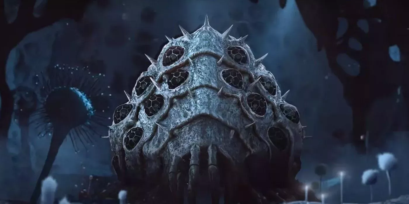 Los Ohmu son criaturas gigantescas parecidas a insectos, con ojos rojos o azules que brillan según su estado de ánimo. Viven en la jungla tóxica y, aunque la mayoría de los humanos temen a los Ohmu, Nausicaä es consciente del papel que desempeñan en el ecosistema. Su inusual diseño de personajes, unido a su gigantesco tamaño, se presta a lo bizarro. Y teniendo en cuenta que no hay muchas películas en las que la heroína principal interactúe con bichos de aspecto tan horripilante, realmente destacan por su rareza.