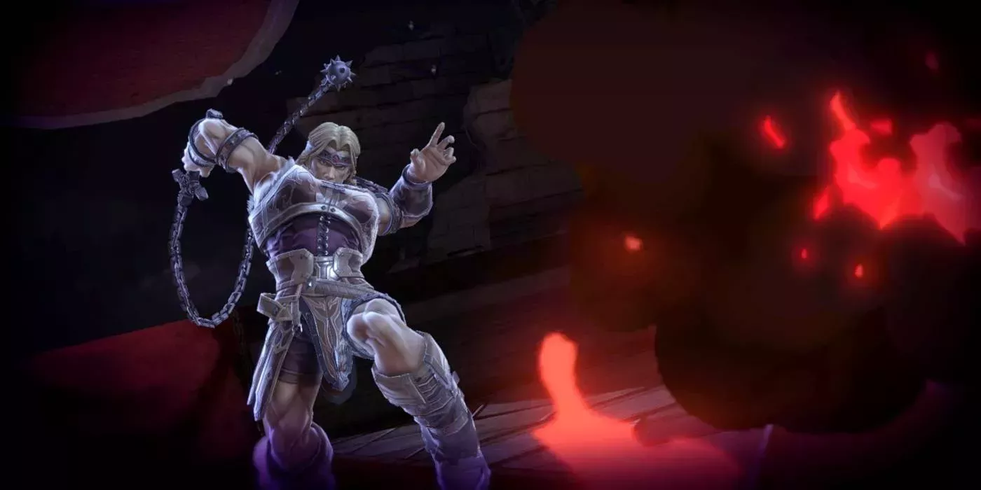 Una de las formas de hacer que los personajes sean más fáciles de manejar para los principiantes es darles ataques que tengan prioridad sobre los demás. Simon se centra en ellos, con ataques a distancia que pueden destruir otros proyectiles. Esto le permite controlar el rango medio y dificultar la aproximación de sus rivales. Su plan de juego es sencillo: utiliza proyectiles potentes y duraderos para hacer fracasar al rival, y aprovecha esa ventaja para preparar sus movimientos letales, como su especial ascendente o sus ataques látigo cargados.