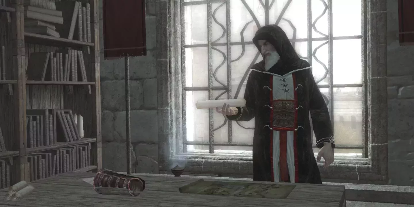 Alvillano original de Assassin's Creed no sólo le encanta discutir; es la forma en que se aferra al poder. Al Mualim ve una oportunidad cuando Altaïr Ibn-La'Ahad se vuelve demasiado arrogante y desprecia el credo de los Asesinos. Lo que en un principio parece un castigo, en el que Al Mualim reprende a Altaïr por quebrantar su credo, es en realidad él mismo derribando a Altaïr e intentando reconstruirlo a su propia imagen.