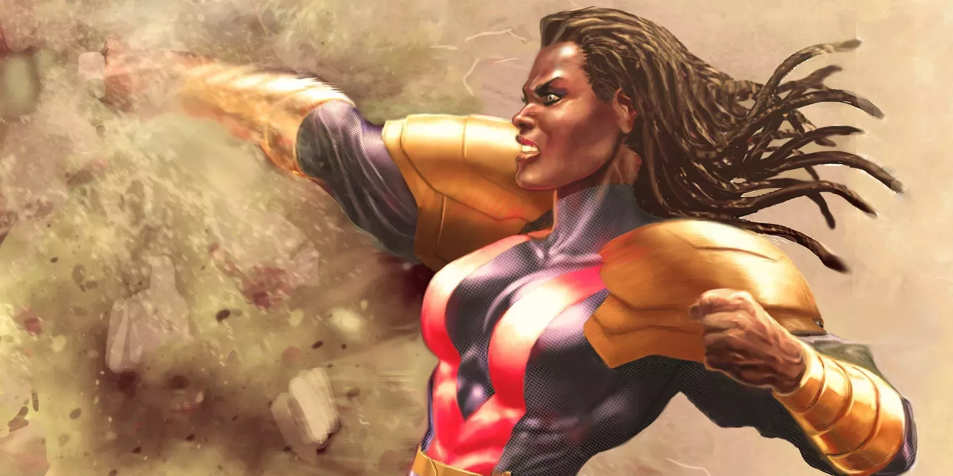 Titania es mucho más fuerte que Lobezno. Aunque se ha retirado del juego de los superhéroes y supervillanos, y solo ha regresado recientemente para unirse a Gamma Flight, sigue dando guerra cuando lo necesita.