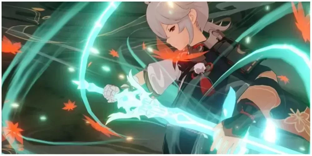 Tanto el Ataque Básico como la Habilidad Elemental de Kazuha sirven para controlar a los enemigos, con un enfriamiento mucho menor que el ya rápido Estallido de Venti. Aunque su arma principal es de cinco estrellas, Kazuha sigue funcionando bien con opciones de cuatro estrellas como Aguijón de hierro y Espada de sacrificio.