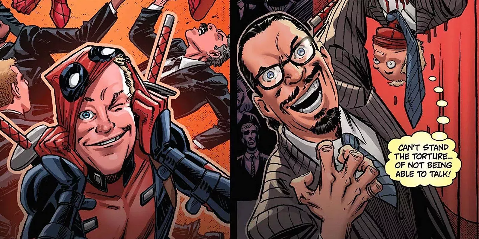 Famosos por su propia marca de magia y por ahondar en los conceptos erróneos más comunes, Penn & Teller se han hecho un nombre por no hacer nunca las cosas de forma fácil. En Spider-Man/Deadpool #11, el famoso dúo lleva las cosas a un nuevo nivel cuando Deadpool -también conocido como el Merc with the Mouth- y Teller -famoso por no hablar nunca- cambian de lugar.En la historia, escrita por el propio Penn Jillette, Deadpool sustituye a Teller durante un espectáculo en Las Vegas, lo que permite a Penn dar rienda suelta a sus ideas más desagradables.