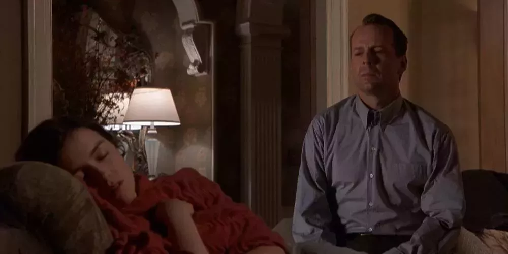 Poco después, Malcolm recibe un disparo y la cámara se detiene directamente sobre su cuerpo mientras su mujer le grita que aguante. A partir de ahí, El sexto sentido pasa directamente a una escena ambientada un año después, aprovechando la familiaridad del público con las técnicas cinematográficas que sugieren el paso del tiempo para dar la impresión de que Malcolm ha sobrevivido de algún modo a este encuentro mortal mientras permanece atormentado por sus secuelas. Por supuesto, la verdad es que no lo hizo.