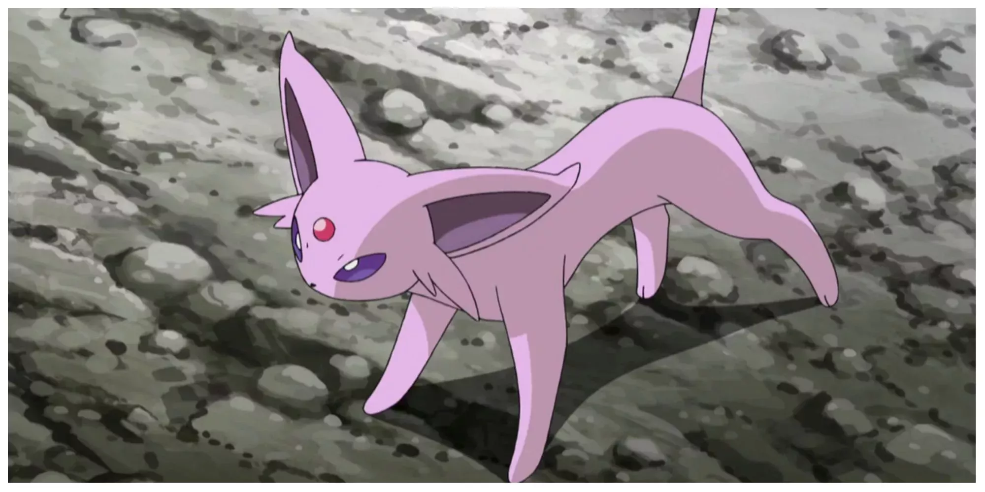 Espeon es la elegante evolución de Eevee de tipo Psíquico. Es un Pokémon de color lila con aspecto de zorro y gato, y una cola con dos puntas. Espeon debutó en "Espeon, Not Included", cuando el Eevee de Sakura evolucionó en uno.