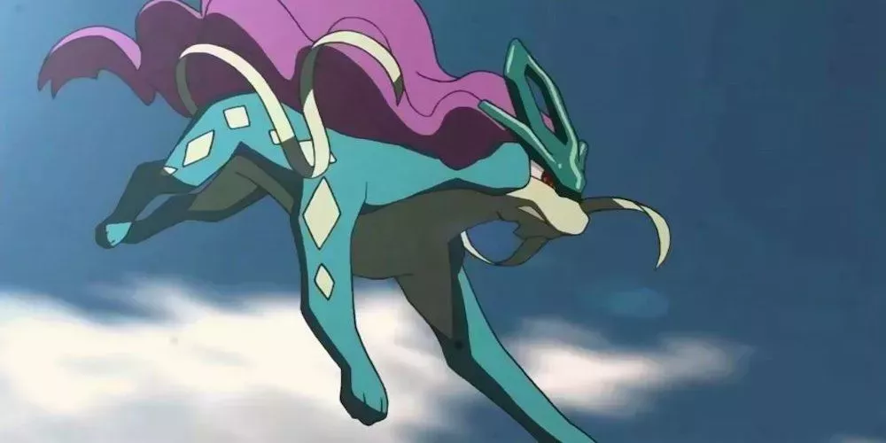 Suicune es un Legendario de tipo Agua que debutó en el episodio "No toques ese dilema". Este perro de agua verde azulado y morado sólo tiene una forma, y es tan majestuosa que sería difícil mejorarla. Su melena púrpura, su corona de púas cerúleas y su elegante pelaje beribbonado son dignos de un Legendario.