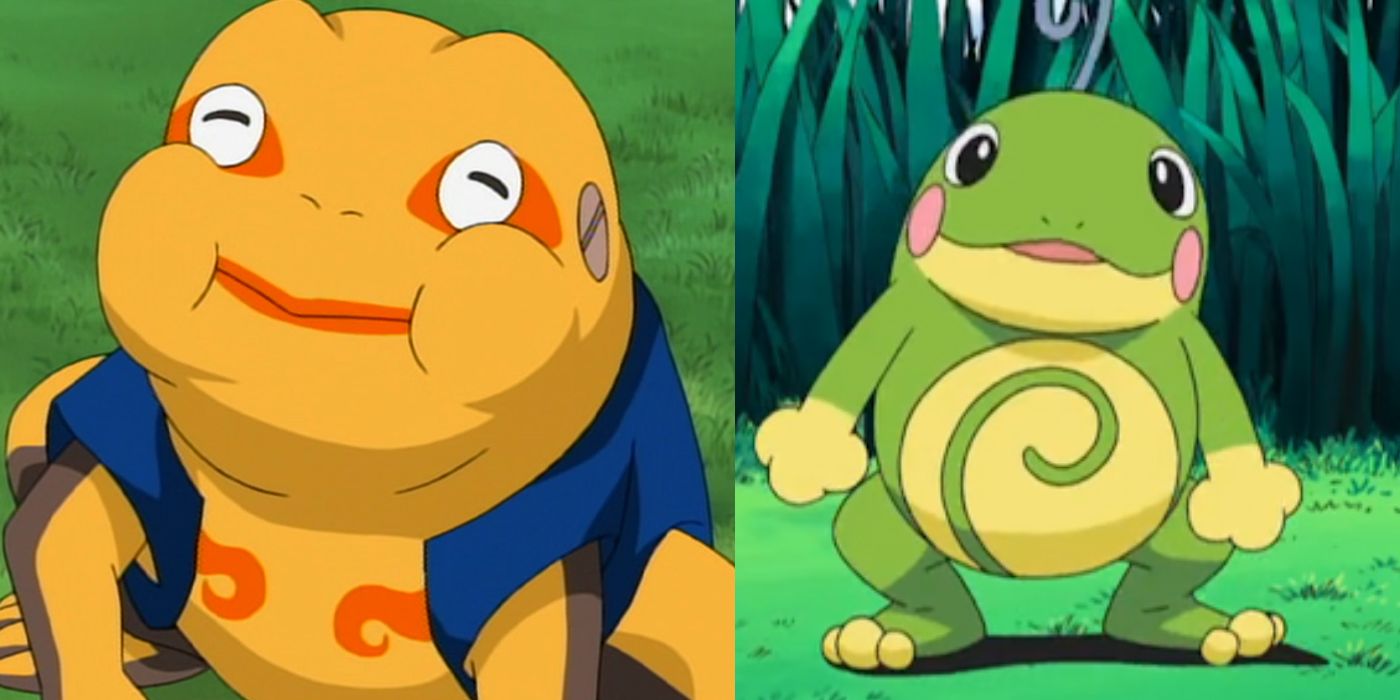 2 Politoed y Gamatatsu son sapos parias de la familia con marcas en espiral