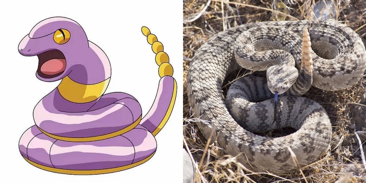 No hay duda de cuál es el reptil en el que se basa Ekans, sólo hay que leer su nombre al revés. Los Ekans pueden abrir sus mandíbulas como las serpientes reales y mudar su piel, e incluso usar su lengua como un tenedor para buscar presas. Para ser más precisos, los Ekans se parecen más a las serpientes de cascabel.