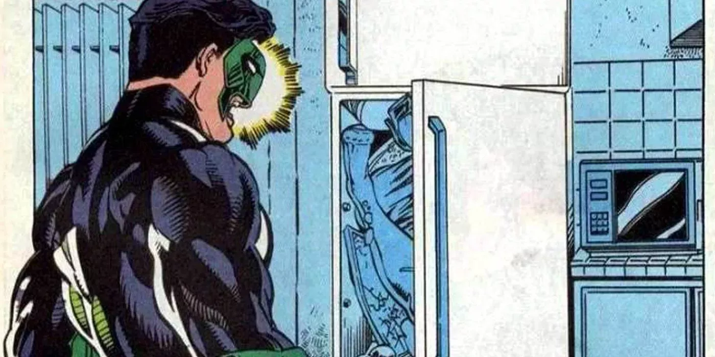 Green Lantern #54 de Ron Marz presenta uno de los momentos más vergonzosos de la historia del cómic. Cuando Kyle Rayner, alias Linterna Verde, llega a su apartamento, encuentra el cadáver de su novia, Alex DeWitt, metido en una nevera por la Fuerza Mayor. Este atroz crimen redujo a Alex a un mero recurso argumental para las heroicidades de Kyle, y los fans lo notaron.