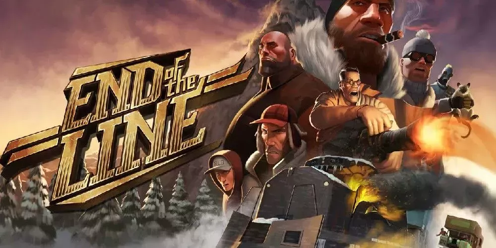 En 2013, la desarrolladora de juegos McVee subió un tráiler de su película de fans de Team Fortress 2, End of the Line. Poco después, Valve se puso en contacto con McVee para hacer oficial End of the Line. La actualización de End of the Line se promocionó con carteles y teasers. Los pósteres de End of the Line prometían la mayor lucha del equipo Red y Blu, pero esto solo se aplicaba a la película de la actualización.