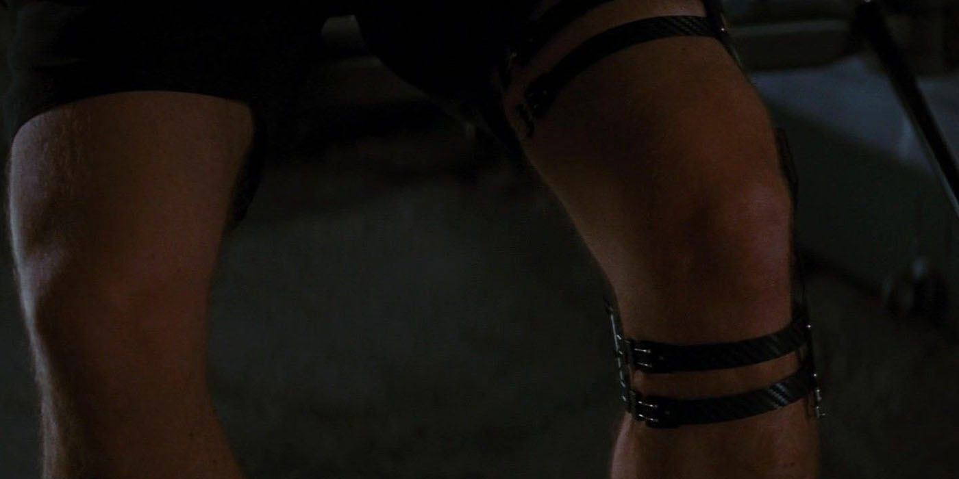 Uno de los elementos más impactantes de la película es el terrible estado en que se encuentra Batman al principio de la película. Wayne lleva un bastón y camina con una notable cojera, aparentemente arruinada por sus años de lucha contra el crimen.