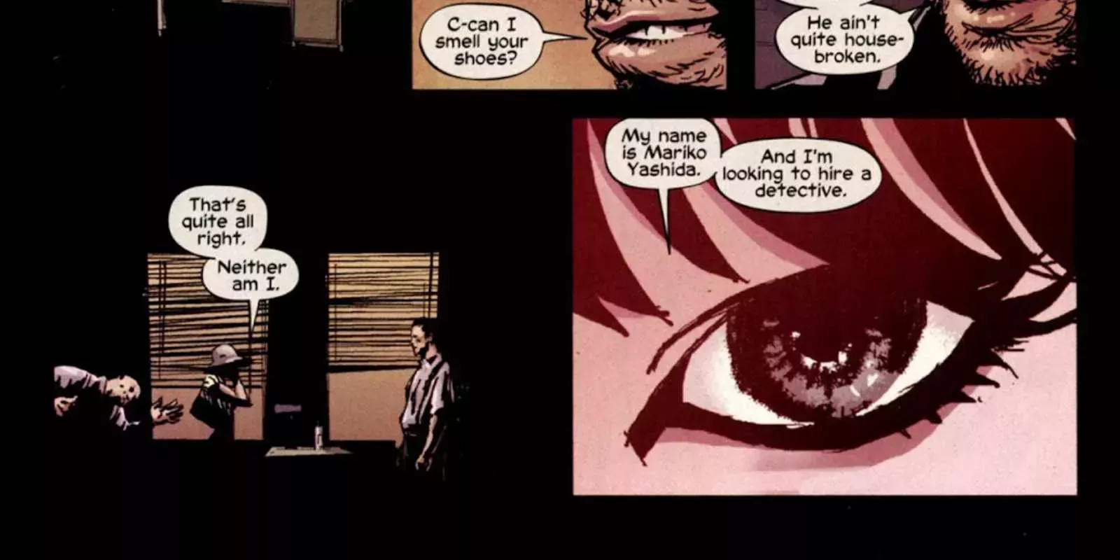 Aunque nada está mal con lo que ha definido a Lobezno a lo largo de los años, sigue siendo agradable verle situado en un escenario tan radicalmente distinto. En Wolverine: Noir, ya no es un mutante. Vive en Nueva York, lejos de las tierras salvajes del norte de Canadá. Lobezno es un humano normal con mala suerte, un tipo normal, no la potencia salvaje que le ha hecho famoso en Tierra-616.