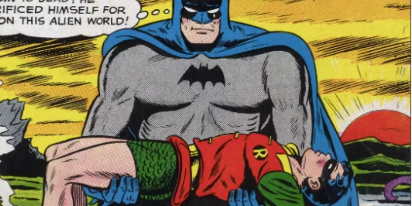Tal vez la portada más icónica de Batman en la Edad de Plata muestre al Caballero Oscuro llorando a su pupilo en una extraña historia parecida a un sueño febril publicada en Batman #156. En la historia, el Dúo Dinámico se ofrece como voluntario para un experimento militar, con resultados de pesadilla.