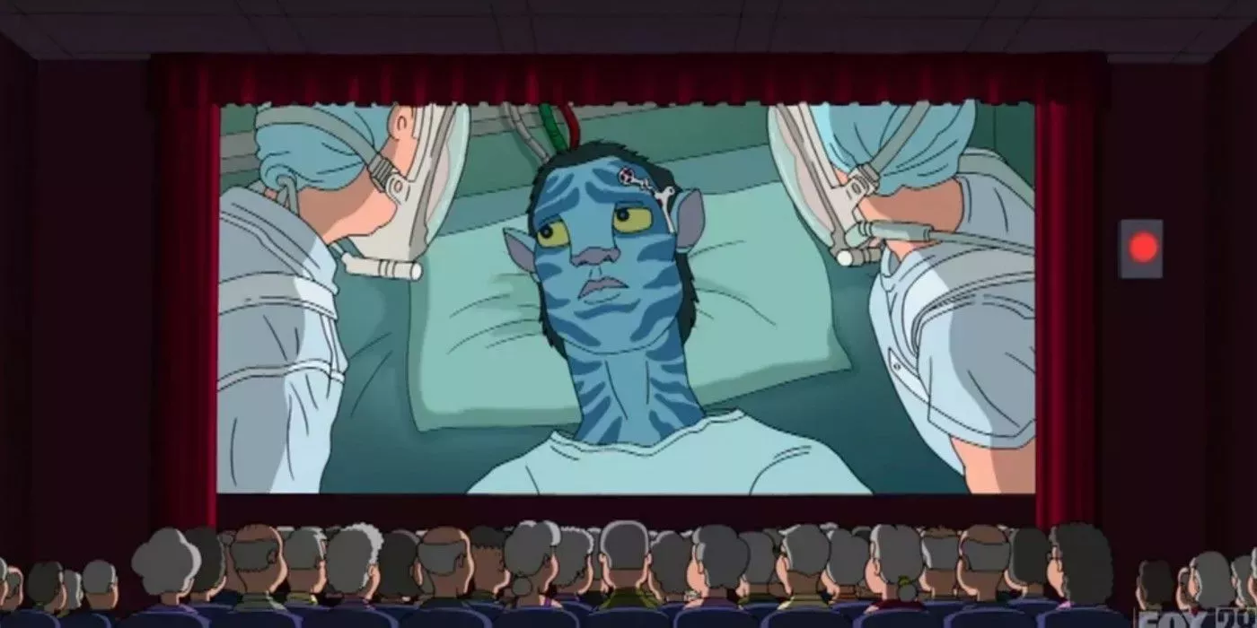 3/10 Padre de Familia se asegura de incluir Avatar en su lista de referenciasPadre de Familia se ganó su reputación como programa que satiriza la cultura pop. En algún momento, pudieron hacer referencia a Avatar, así como burlarse ligeramente de ella. La referencia tiene lugar en el episodio de la décima temporada "Grumpy Old Men", donde se proyecta la película en una residencia de ancianos a la que acude temporalmente el suegro de Peter, Carter Pewterschmidt.