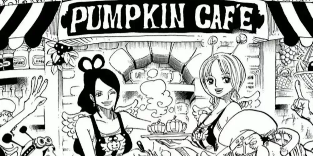 El Pumpkin Café abrió en Skypiea durante el salto de dos años. Como el local es bastante nuevo, el restaurante tiene una historia limitada. La falta de antigüedad se adapta a la avanzada sociedad de Skypiea y, en cambio, introduce un enfoque futurista a la hora de salir a cenar.
