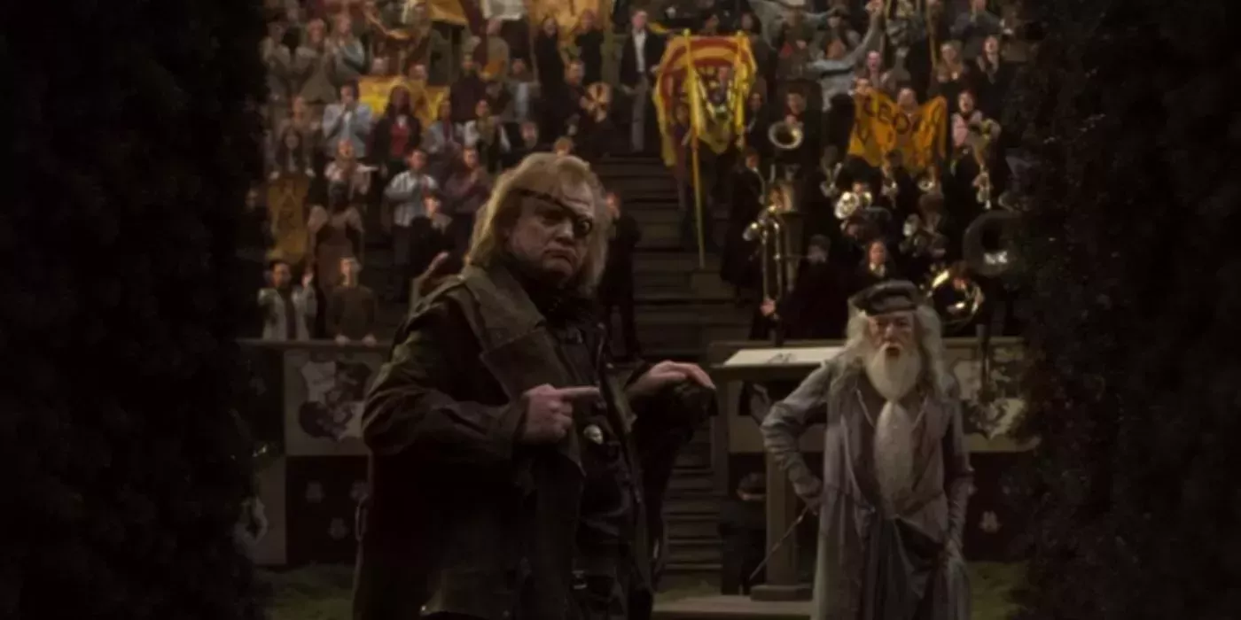 Moody coloca la Copa del Torneo en el centro del laberinto para evitar un conflicto de intereses de los directores. Mientras Harry se alinea, Moody señala en secreto hacia la izquierda, indicando la dirección en la que el chico puede encontrar la copa. Aunque un profesor normal de Hogwarts está obligado a animar a su Campeón, no aprueba las trampas.