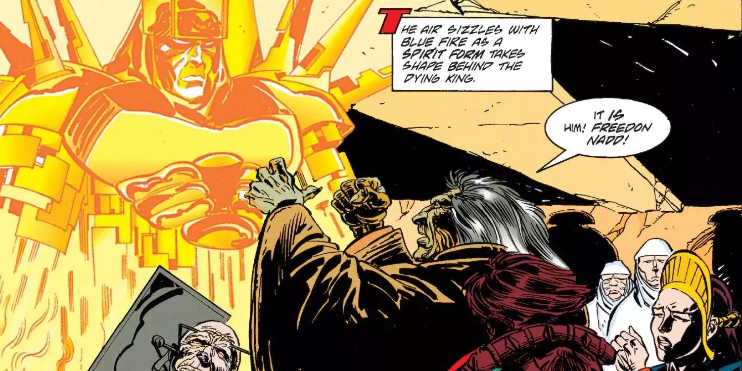 Y lo que es más importante, el ansia de conocimiento y poder de Freedon Nadd le llevó a la luna del bosque Yavin 4, donde residía el espíritu exiliado de Naga Sadow. Al estilo clásico de los Sith, Nadd mató a su maestro una vez que sintió que había aprendido lo suficiente, y asumió su manto. El nuevo Señor Oscuro apareció en destacados arcos argumentales de Tales of the Jedi, concretamente en "El levantamiento de Freedon Nadd", al igual que otros antiguos personajes Sith.