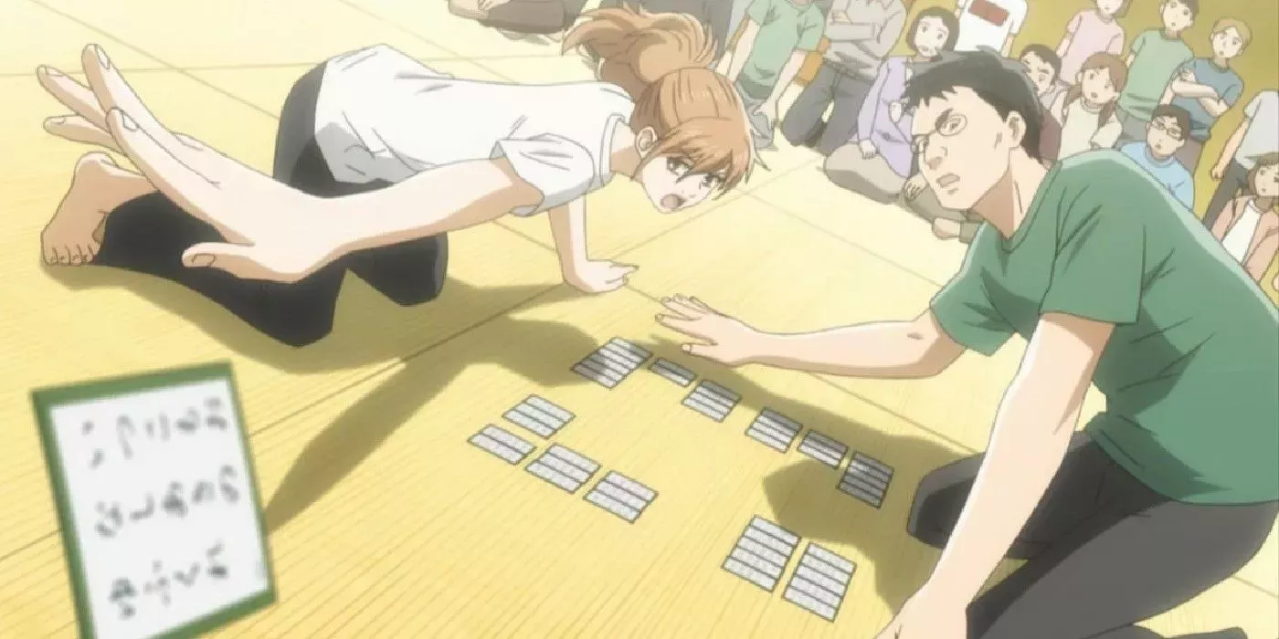 Karuta es un juego tradicional japonés de cartas intercambiables que originalmente era un juego para niños antes de evolucionar a uno competitivo. En él, los jugadores tienen que hacer coincidir el mayor número de cartas con imágenes con un determinado proverbio o poema para ganar. Aunque esto puede parecer mundano en el texto, Chiahyafuru no sólo lo hizo emocionante, sino también dramático.
