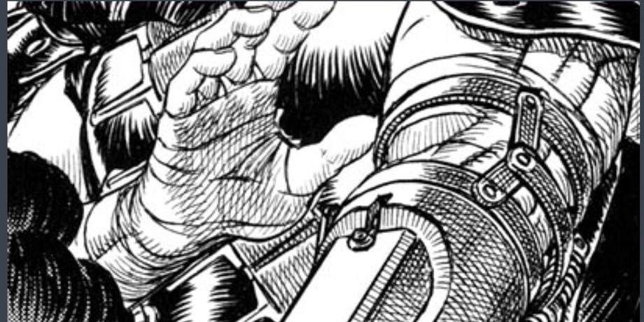 Guts pierde su antebrazo izquierdo en una batalla. Esto es más que una tonta coincidencia porque, a lo largo de la historia, la izquierda ha sido asociada con el mal por cualquier razón. Tan recientemente como en los años 50, al menos en América, la mano izquierda, y especialmente la gente que era zurda, ha sido considerada tan malvada que los padres entrenaban a los niños zurdos a escribir con la derecha.