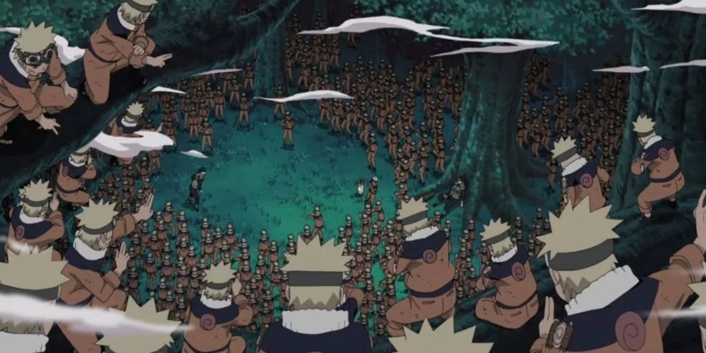 Esta técnica es el Shadow Clone Jutsu que crea clones que básicamente toman la fuerza vital del usuario. Si se crean demasiados clones o mueren demasiados, el usuario morirá. Por suerte, el chakra sobrehumano de Naruto de las Nueve Colas le ayuda a sobrevivir.