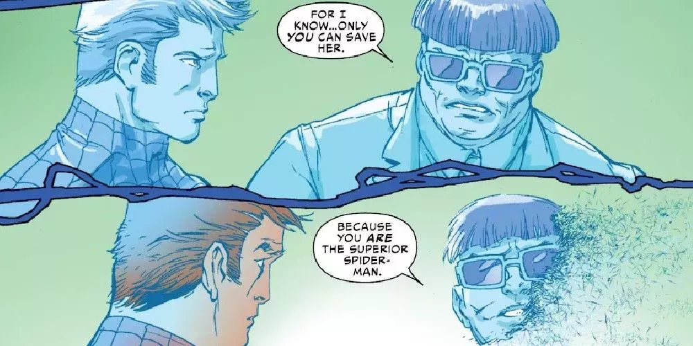 Doc Ock fue el caso más extremo y sorprendente de este tema en acción. En su acto más atroz, Doc Ock robó literalmente la vida de Spider-Man trasplantando su mente al cuerpo de Peter y dejando al héroe en un moribundo Otto Octavious. Al final, Doc Ock se redimió devolviendo a Spider-Man su cuerpo y borrándose de la existencia.