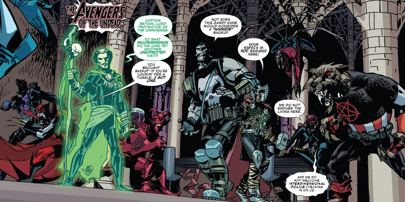El mundo estaba dividido por las diversas facciones de lo sobrenatural, aunque los héroes oscuros de ese mundo se habían formado juntos como los Vengadores de los No-muertos, que estaba dirigido por el Hermano Vudú y contaba con miembros monstruosos como un Capitán América licántropo y un Hombre-Espídeo totalmente transformado que no tenía amor por los vivos.