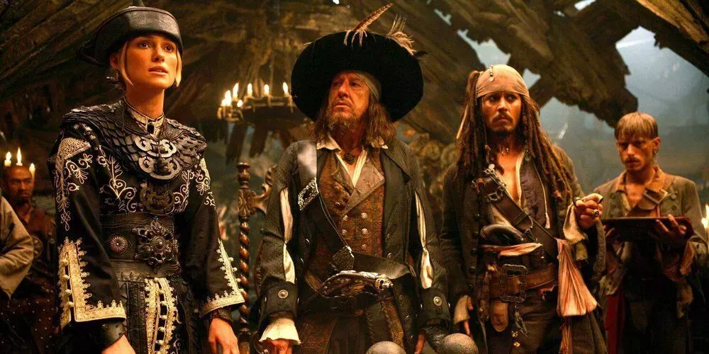 Piratas del Caribe fue una trilogía autoconclusiva, en la que se detallaba el enredo de Will Turner y Elizabeth Swann con el capitán Jack Sparrow, y los piratas menos sanos que seguían su estela. La primera película era un simple juego de espadas, sin ningún indicio de lo sobrenatural en el mundo más allá de una tripulación de piratas malditos.