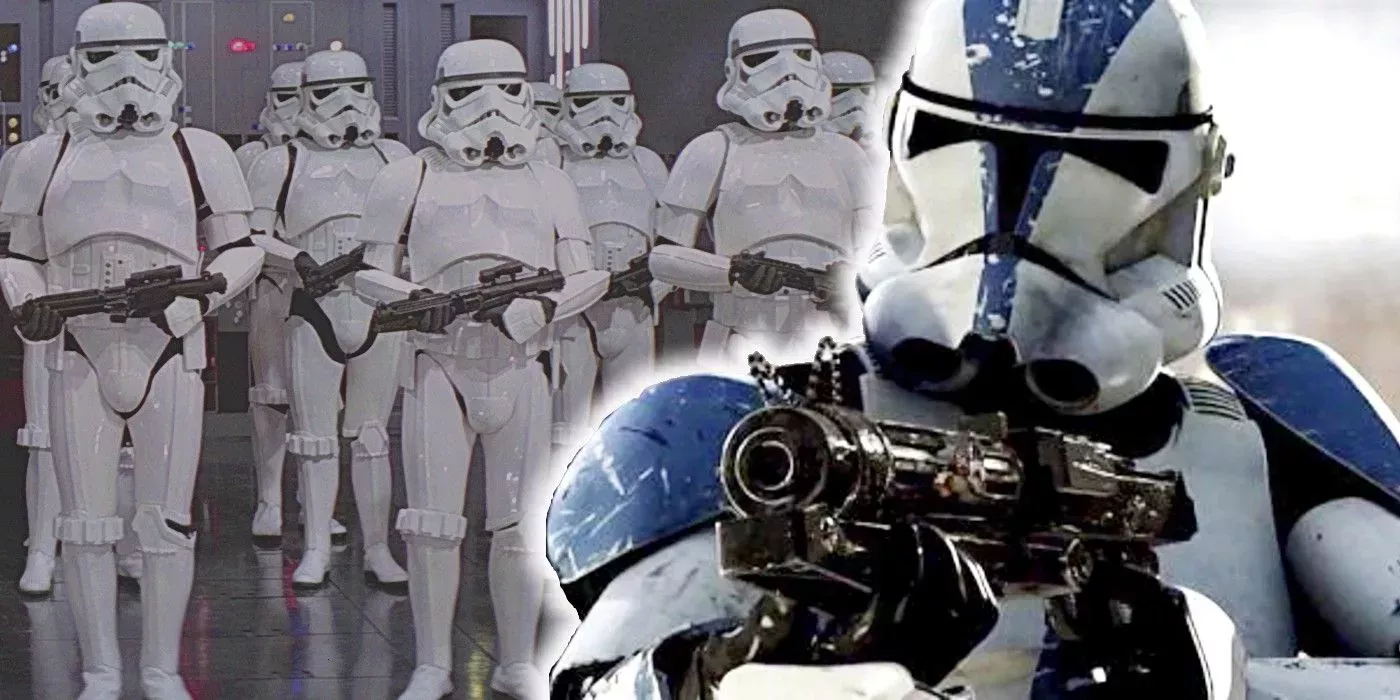 La Guerra de las Galaxias contiene muchos ejércitos sin rostro, cada uno de ellos siniestro a su manera. Desde los clones, cuyas personalidades acaban siendo despojadas cuando comienza la Orden 66, hasta los droides y los soldados de asalto, ambos programados o entrenados para seguir órdenes, los ejércitos sin rostro dirigen los conflictos de La guerra de las galaxias. Se convierten en parte de una máquina mayor, que se suma al discurso sobre la responsabilidad colectiva bajo regímenes corruptos.