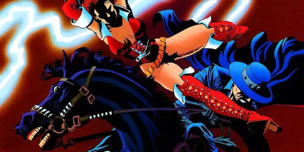El mundo del Zorro que Topps publicó en los años 90 es rico gracias a la incorporación de numerosos personajes. El más visible de ellos es Lady Rawhide. Al llegar al mundo del Zorro, Superman podría encontrar familiar el escenario de un oscuro hombre misterioso que lucha contra autoridades corruptas al que ha visto en Gotham City.