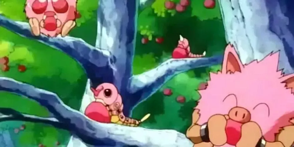 Los juegos de Pokémon se han vuelto gradualmente más detallados y han incorporado una serie de condiciones que son factores en el desarrollo y la evolución de un Pokémon. Detalles como la dieta y el temperamento de un Pokémon son ahora cada vez más importantes. La serie de anime de Pokémon explora esta premisa mucho antes de que sea un aspecto vital en los videojuegos. Ash y compañía visitan la Isla Pinkan durante sus aventuras en la Isla Naranja. La isla está llena de Pokémon que tienen una complexión exclusivamente rosa. Este aspecto contrastado es el resultado de la fruta rosa de la isla, y ha hecho que estos Pokémon sean muy populares en la comunidad de cazadores furtivos.