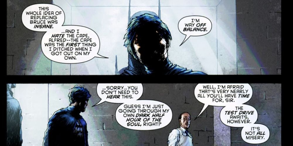 Bruce Wayne sin duda ha confiado en Alfred Pennyworth toda su vida, pero no con la misma reverencia que Dick Grayson le tiene. En muchos sentidos, Bruce ha dado por sentado a Alfred, y Dick, tal vez debido a pasar la mayor parte de su infancia sin un mayordomo, aprecia plenamente a Alfred.