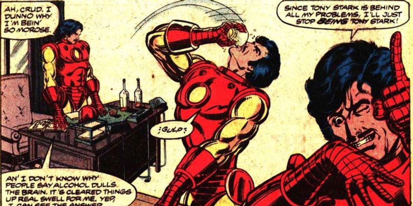 Iron Man parece tener un serio problema para contenerse. No puede evitar decir las cosas más inapropiadas, sólo para enfurecer a los demás, y no puede evitar tomar decisiones sin considerar las consecuencias de sus acciones. Pero lo peor de todo es que cuando empieza a beber, se pierde fácilmente en ello y empieza a beber copiosamente. Consume tanto alcohol que difama en importantes discursos (como la conferencia científica de Berna).