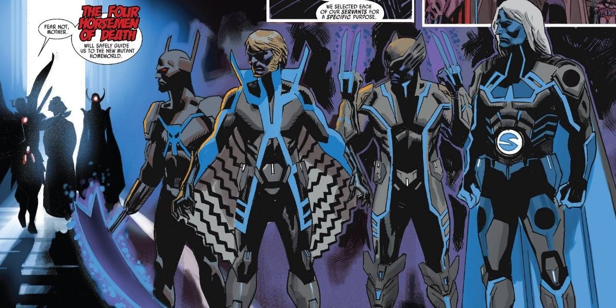 Los Jinetes mitológicos del Apocalipsis son hechos realidad por En Sabah-Nur, un surtido que ha incluido diferentes superhéroes en diferentes momentos. Algunos de los mutantes bajo su hechizo han sido Polaris, Banshee, Gambit, Magneto, Arcángel, Tormenta, Lobezno, Coloso, y la lista continúa.