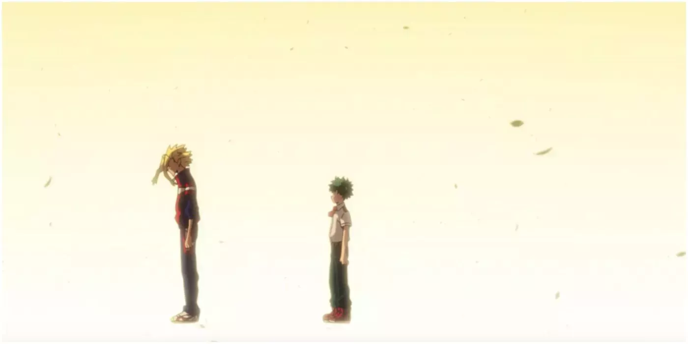 All Might preparó varias comidas para Deku, que se había acostumbrado a no comer, y fue una constante voz de la razón que le animaba a buscar descanso mientras pudiera. De hecho, fue su devoción por Deku durante este periodo lo que hizo que fuera aún más desgarrador cuando Deku obligó a su mentor a dejar de seguirle a todas partes. Sólo la reacción dolida de All Might fue prueba suficiente de que Deku le importaba de verdad.
