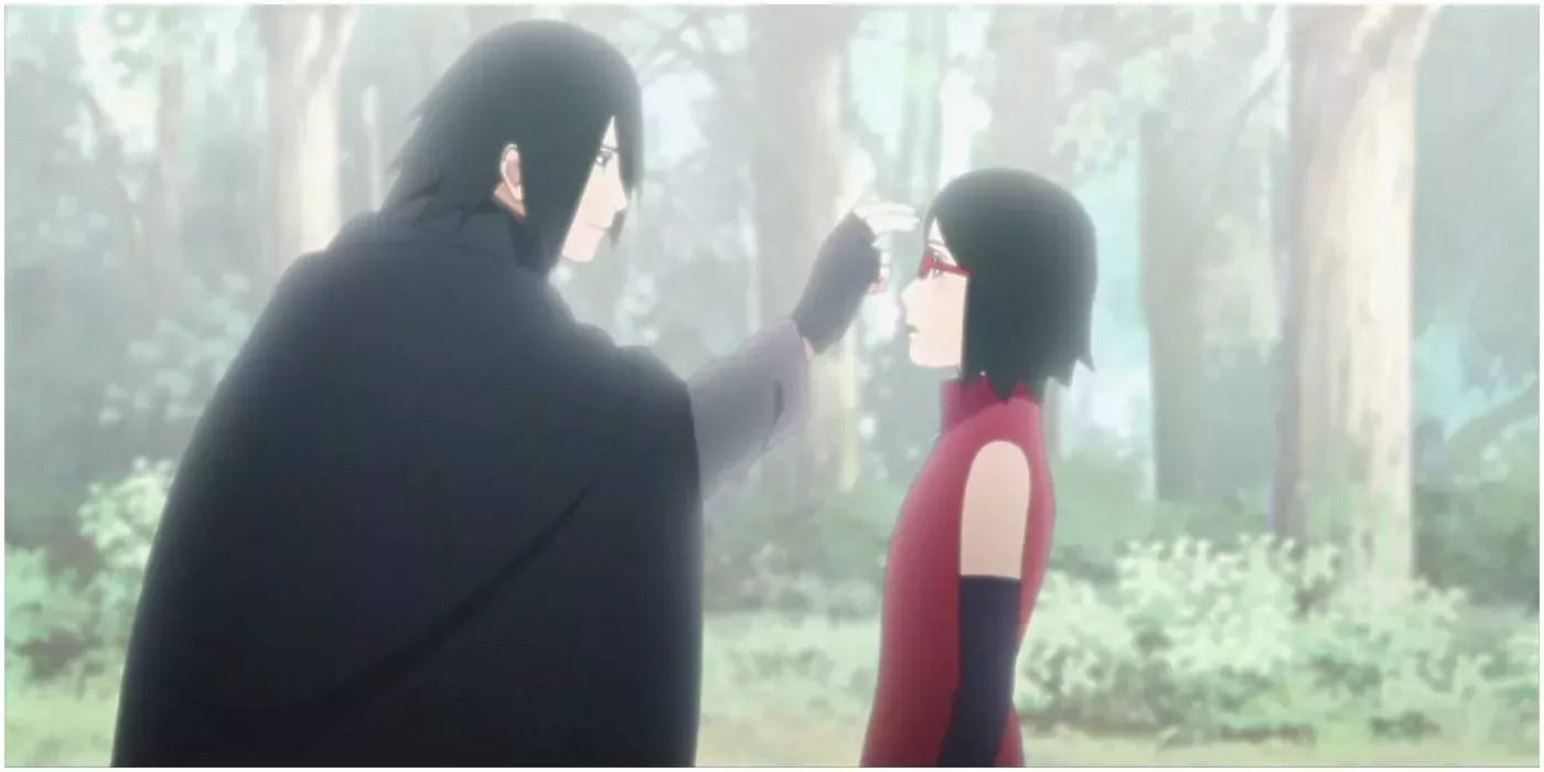 Sasuke Uchiha estuvo aún menos presente en la infancia de su propia hija, Sarada Uchiha, que pasó por la Academia sin la ayuda de su padre. Al igual que Naruto, Sasuke también se esforzaba por proteger la aldea buscando información sobre los Otsutsuki. Por desgracia, esto le hizo perder la vida de Sarada.