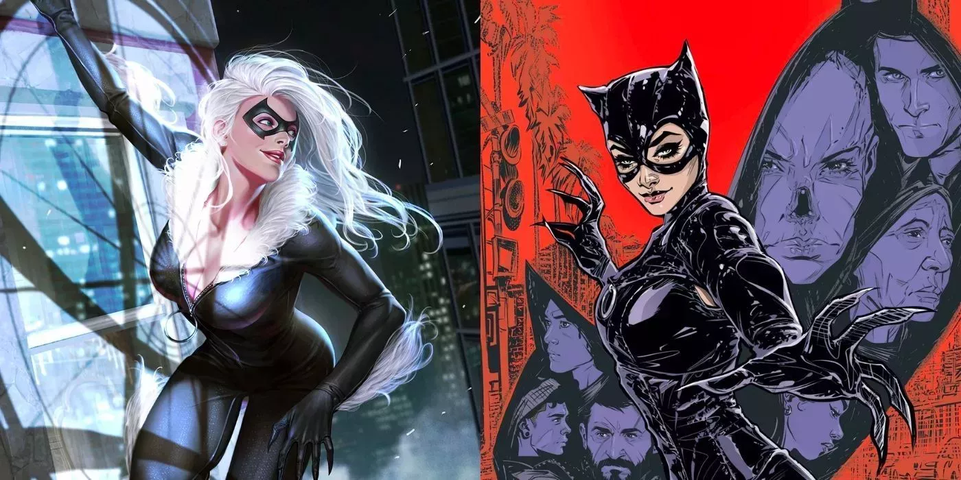 Catwoman apareció por primera vez en 1940, y desde entonces ha jugueteado con Batman. Su homóloga en Marvel, Black Cat, sólo aparece desde Amazing Spider-Man #194 (creado por Marv Wolfman, Keith Pollard, Frank Giacoia, Ben Sean y John Costanza) en 1979. Astutas ladronas que hacen de villana y de heroÃna, Black Cat y Catwoman no podrÃan parecerse más.
