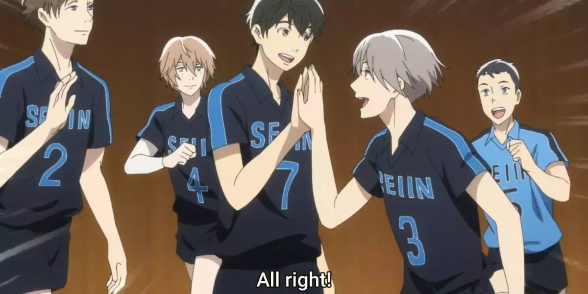 2 El amor de Yuni y Hajima por el voleibol les ayuda a reconciliarse (2.43: Equipo de voleibol masculino del instituto Seiin)