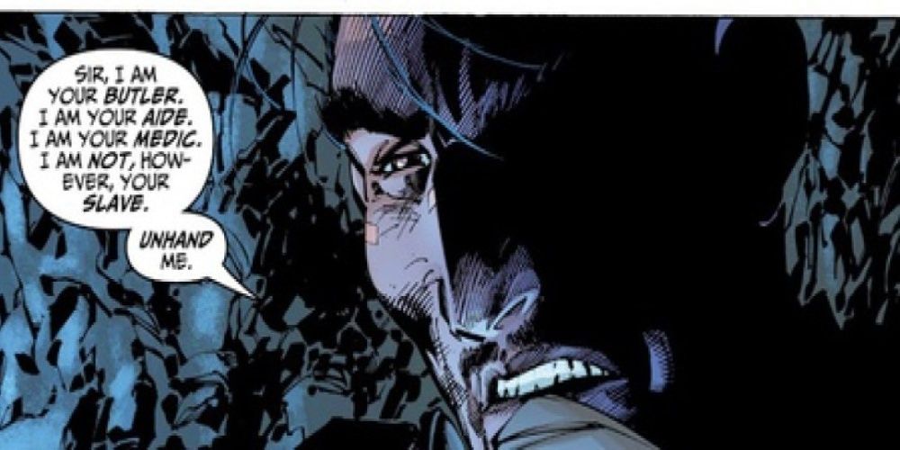El hecho de que reprendiera a Alfred por darle a Dick ropa limpia, comida y una manta carece de cualquier tipo de sentido. Incluso si estaba tratando de endurecer al chico, fue más allá de lo necesario, lo que se agrava aún más por el hecho de que esto lleva a Bruce a poner sus manos sobre Dick de nuevo.