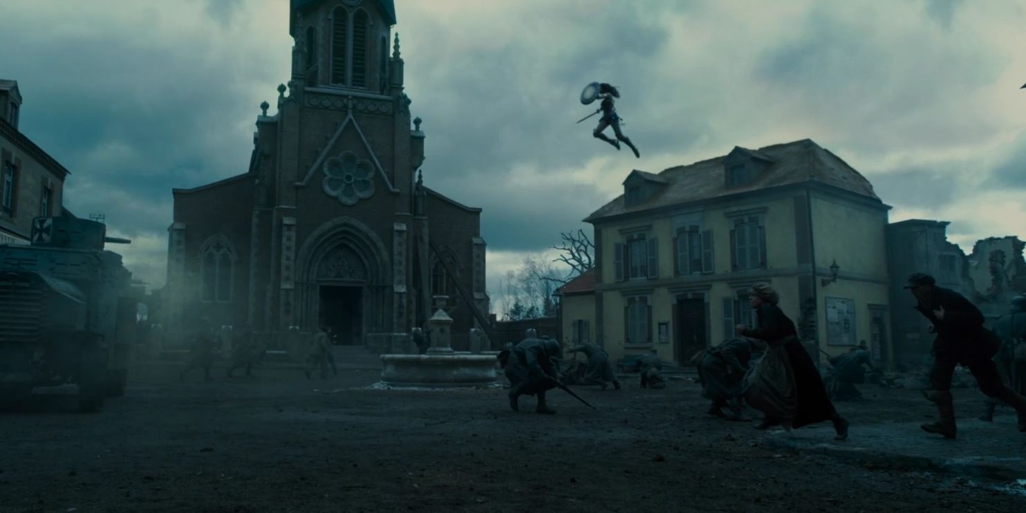 En la primera película de Wonder Woman, Diana y sus amigos liberan la ciudad de Veld, en Bélgica, y a sus habitantes de la ocupación alemana. Hay una celebración, pero muy breve. Cuando Diana se marcha para asistir al elegante evento en el castillo, las tropas alemanas disparan una bomba de gas que destruye por completo la ciudad y mata a todos sus habitantes.
