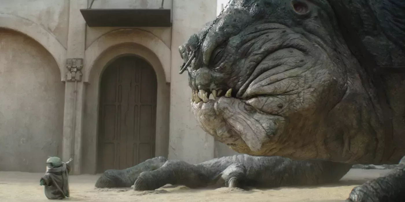 Cuando el rencor empezó a desbocarse en la ciudad en el capítulo 7: En nombre del honor, había pocas esperanzas de detenerlo sin que Boba Fett interviniera. Cuando Grogu vio a Mando en peligro, se enfrentó a la bestia y la calmó con la Fuerza.